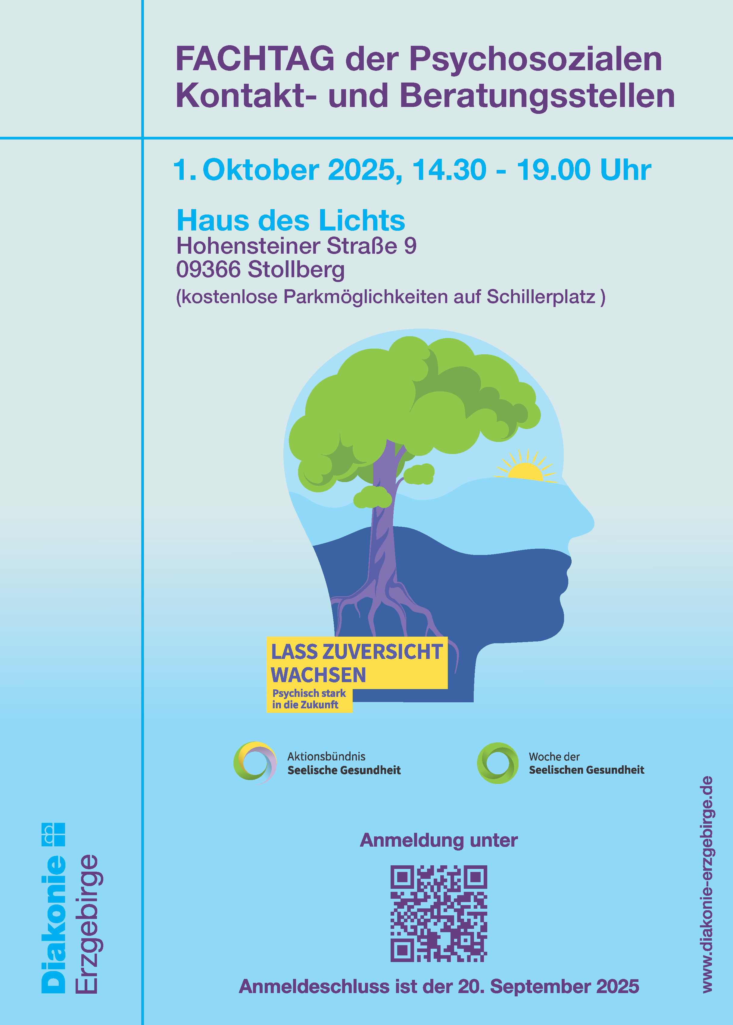 Am 1. Oktober 2025 findet im Haus des Lichts in Stollberg unser diesjähriger Fachtag unserer Psychosoziale Kontakt- und Beratungsstelle statt – eine besondere Veranstaltung im Rahmen der Woche der Seelischen Gesundheit und des bundesweiten Mottos: